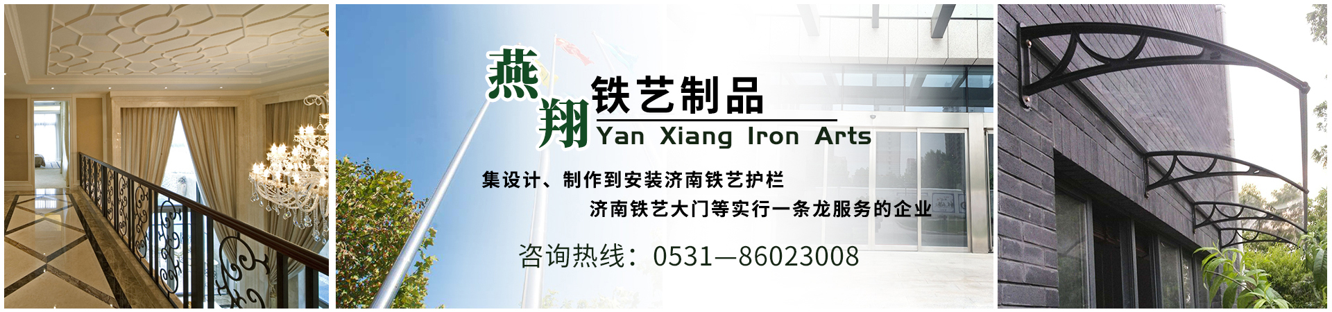 濟(jì)南燕翔鐵藝制品有限公司是一家集設(shè)計(jì)、制作到安裝濟(jì)南鐵藝護(hù)欄,濟(jì)南鐵藝大門等實(shí)行一條龍服務(wù)的企業(yè),具有高標(biāo)準(zhǔn)、高科技的管理模式,并有著多年的設(shè)計(jì)、生產(chǎn)、制作經(jīng)驗(yàn),工藝精湛。企業(yè)生產(chǎn)安裝各種不銹鋼系列產(chǎn)品:鐵藝樓梯、鐵藝護(hù)欄、鐵藝大門、鐵藝護(hù)窗、鋼梁雨篷、地下車庫雨篷、各式汽車自行車雨篷、鋼結(jié)構(gòu)工程、玻璃門、感應(yīng)門、幕墻等工程。制作各類不銹鋼異形、不銹鋼扶手、護(hù)欄、不銹鋼防盜門、...